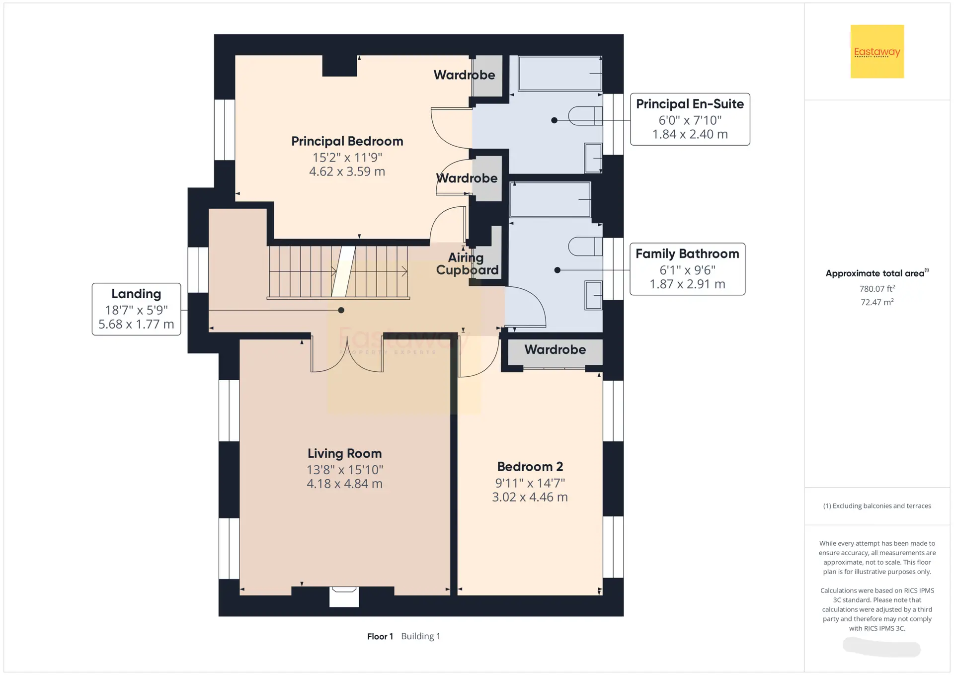 Landing 18' 8" x 5' 10" (5.68m x 1.77m)