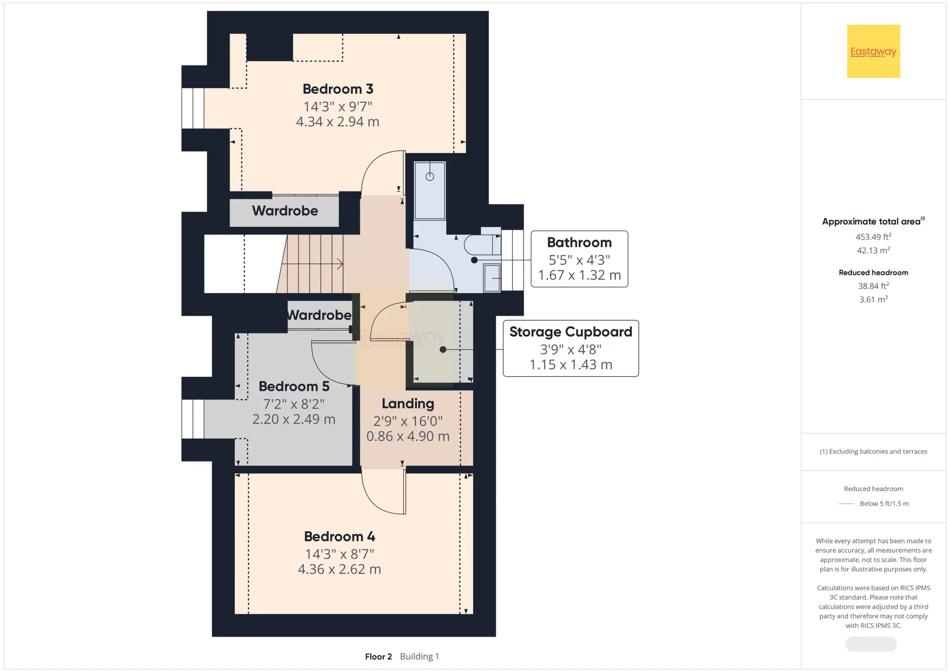 Landing (second floor) 2' 10" x 16' 1" (0.86m x 4.90m)