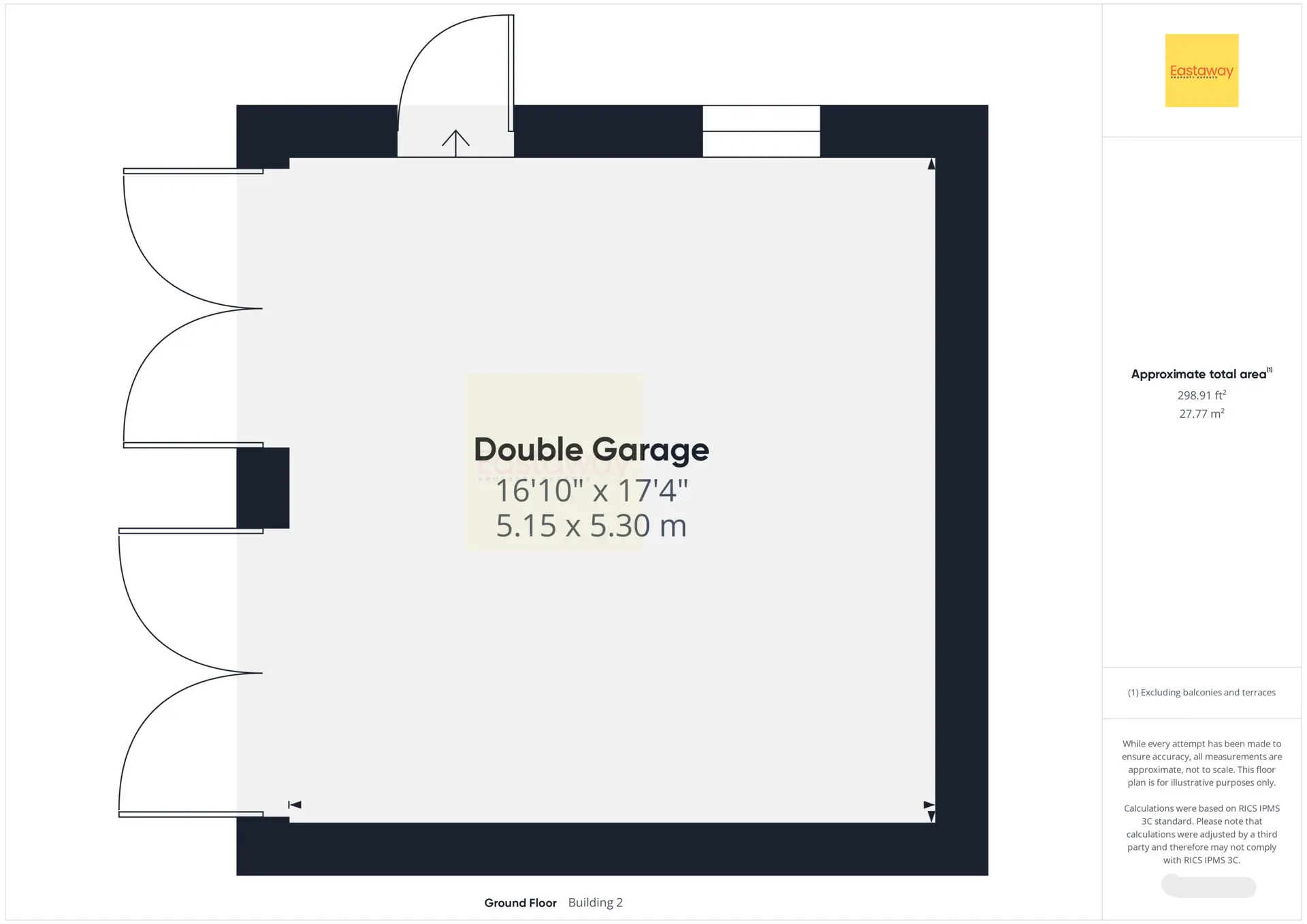 Double Garage 16' 11" x 17' 5" (5.15m x 5.30m)
