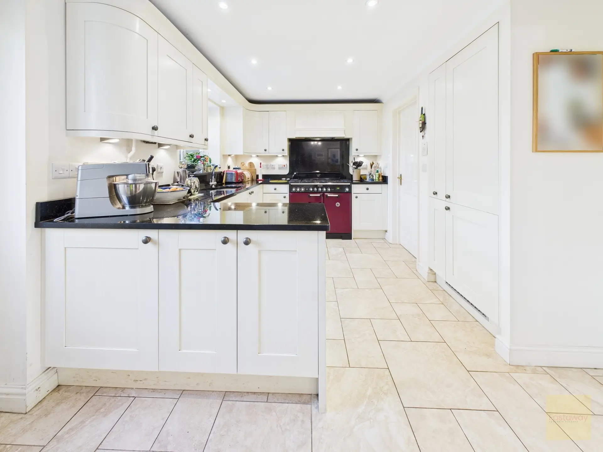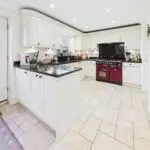 The kitchen is well-equipped with built-in appliances, including a range cooker, dishwasher, and fridge/freezer. There’s also plenty of worktop space, making meal prep a breeze. A separate utility room and pantry keep things tidy, with space for a washing machine and dryer.