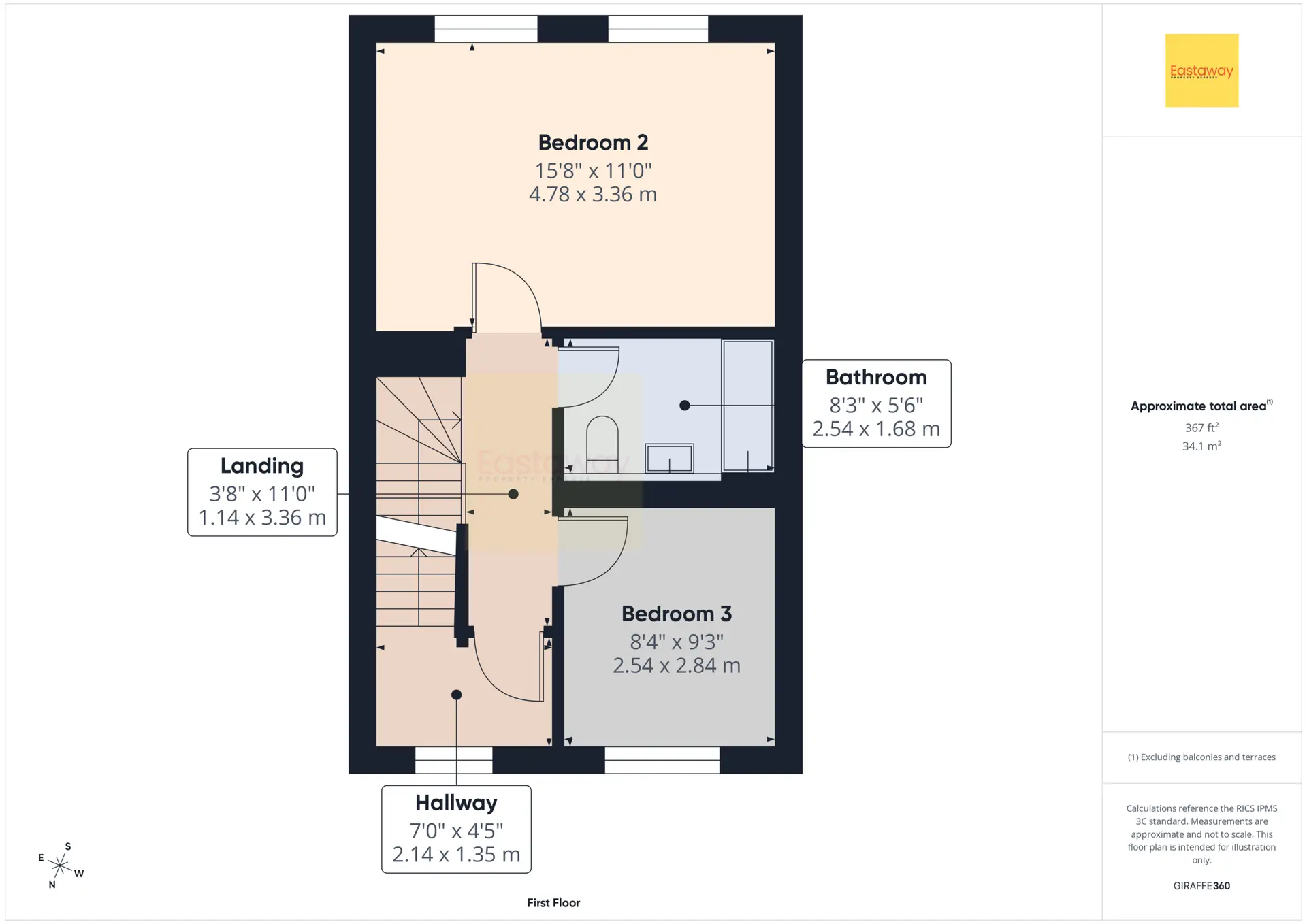 Landing - First Floor 3' 9" x 11' 0" (1.14m x 3.36m)
