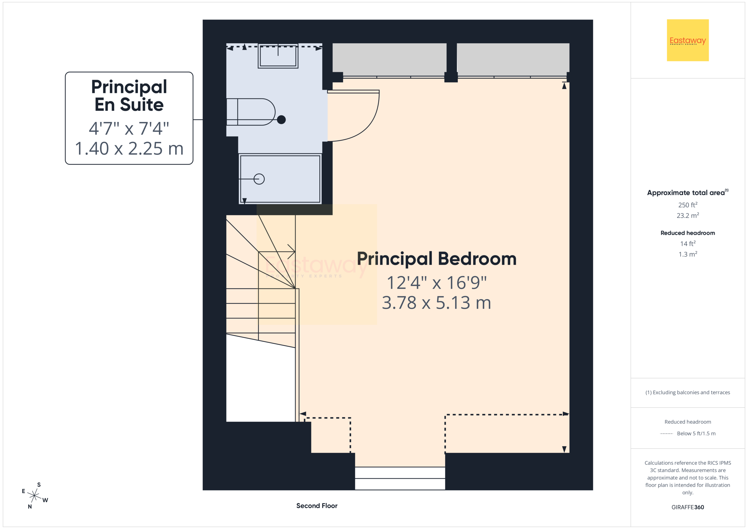 Principal En Suite 4' 7" x 7' 5" (1.40m x 2.25m)