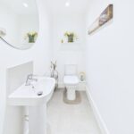 Step inside and the layout makes perfect sense. The hallway is generous, with useful understairs storage and a spacious ground floor WC, so there is a proper feeling of space from the outset. The kitchen sits at the front of the house and is smart, bright and very usable, fitted with built in appliances including a dishwasher, oven, hob, fridge freezer and washer dryer. There is also space for a small dining table, which makes it ideal for everyday breakfasts, a morning coffee, or an easy midweek supper.