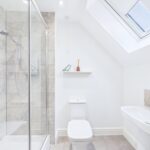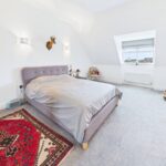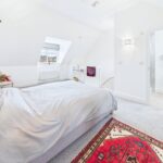 The top floor is given entirely to the principal bedroom, and that gives it a real sense of privacy and retreat. It is a lovely space, bright and airy, with mirrored built in wardrobes, a Velux skylight, and a further window overlooking the front. Having an en suite alongside it, complete with shower, WC and wash basin, makes this floor feel like a private suite rather than simply another bedroom.
