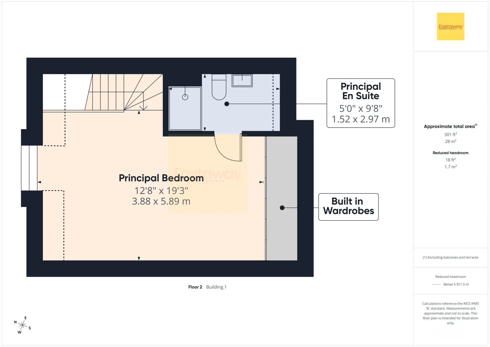 Principal En Suite 5' 0" x 9' 9" (1.52m x 2.97m)