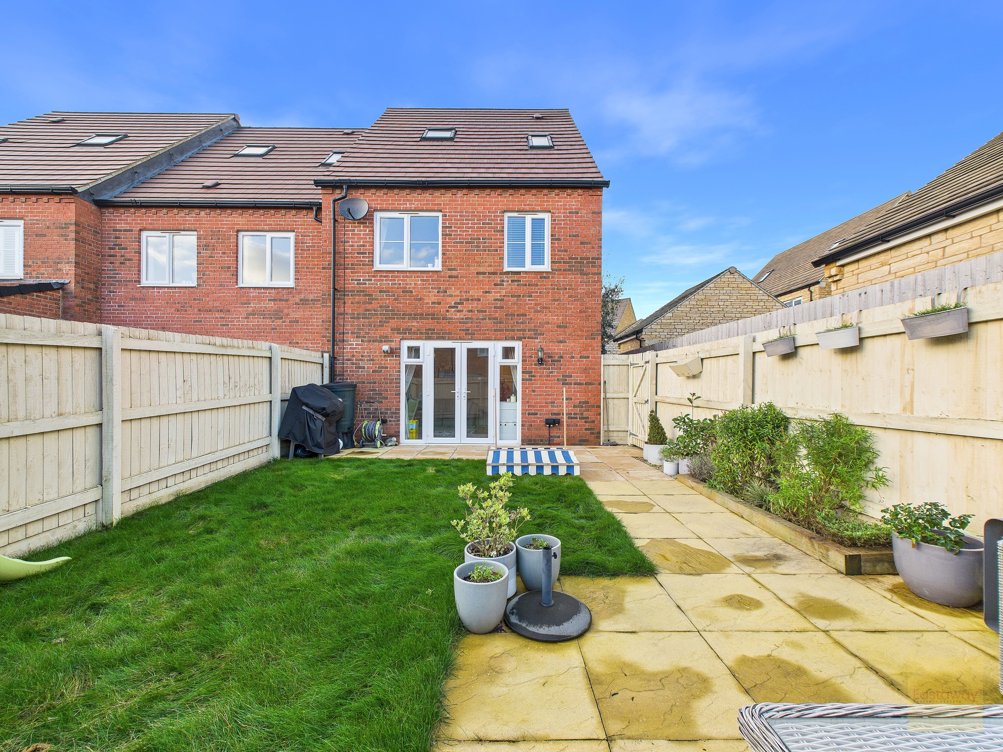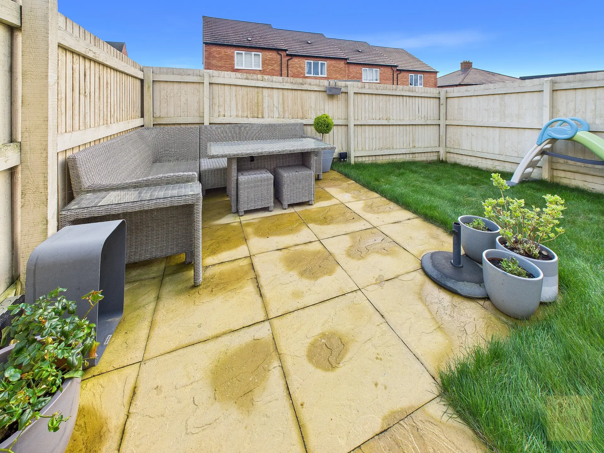 Outside, the rear garden is fully enclosed, south facing, and set up to be genuinely enjoyed. There’s a patio area, a lawn for play, and thoughtful touches like multiple outdoor electric sockets for lighting or garden use. It’s practical, family friendly, and still feels homely rather than overdone.