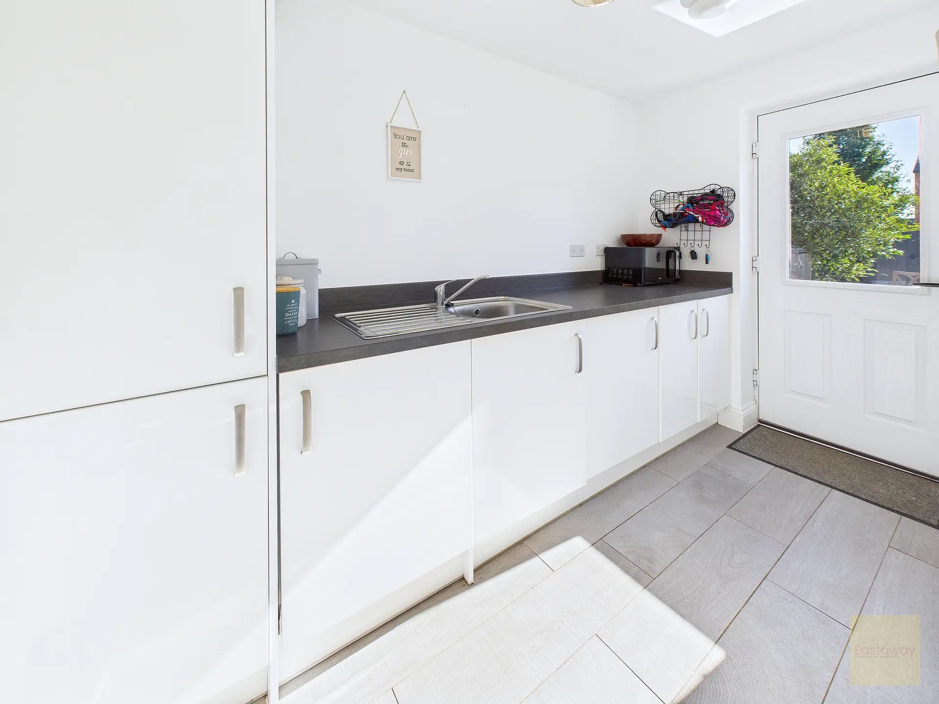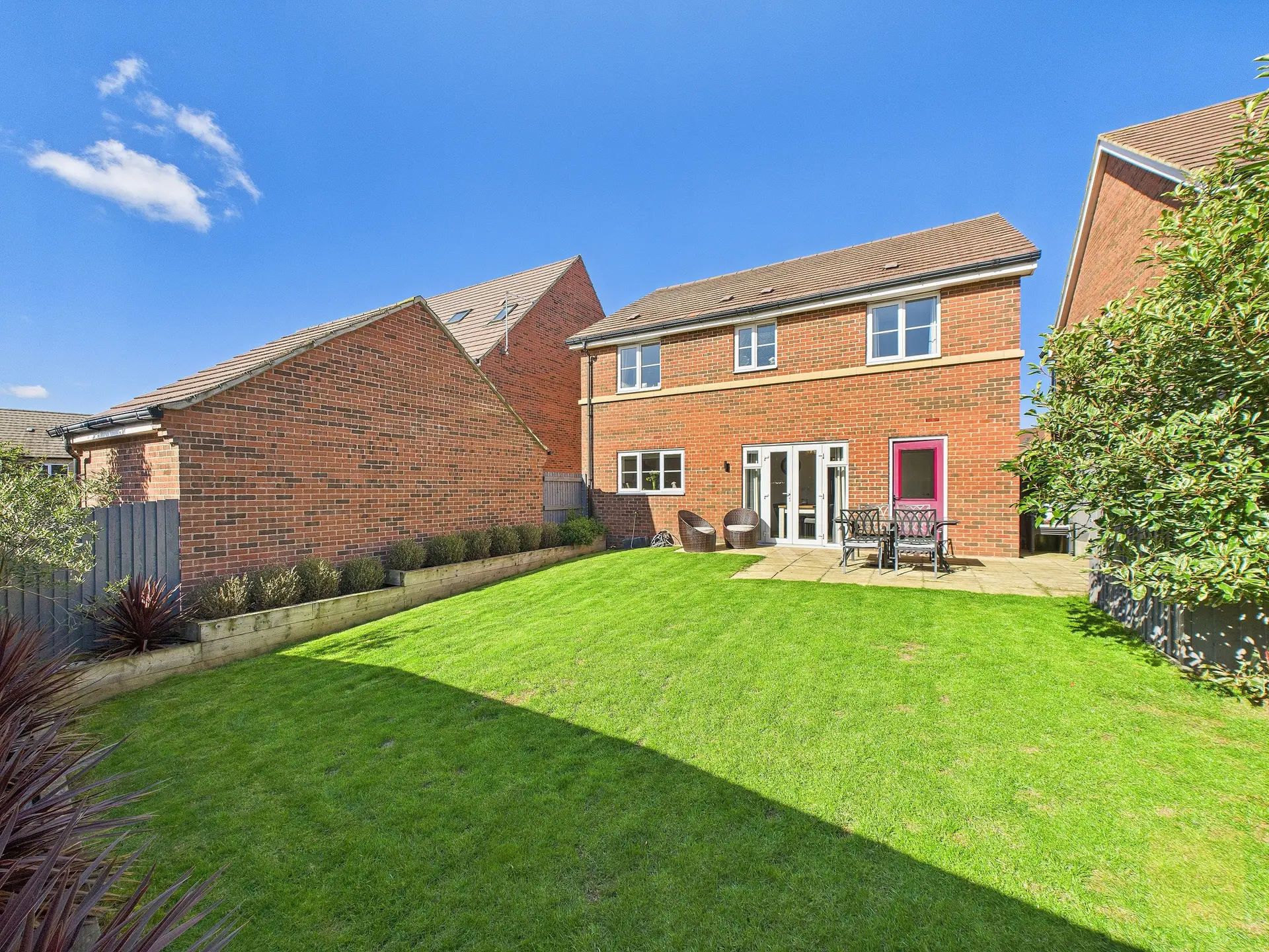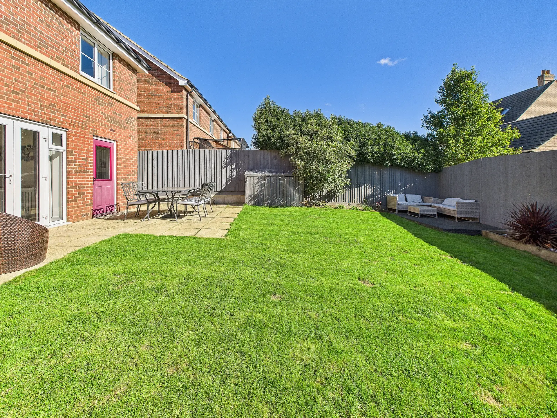 The garden faces south east, so it enjoys sun from morning through to evening. It’s enclosed, secure, and low maintenance, with lawn, patio, and decking all laid out to create different spaces for relaxing, playing, or entertaining. While there is another property to the rear, the layout doesn’t feel closed in, and with simple planting, like fast-growing hedging or pleached trees, you could easily make it feel completely private. The current owners especially love the decking in the bottom corner, which becomes a sun trap through the summer months.