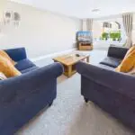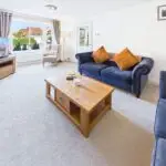 The living room is bright and generous, with a bay window that floods the space with natural light. It’s the kind of room that adapts to any stage of life, cosy enough for quiet nights in but large enough to gather everyone together at Christmas or for a family film night.