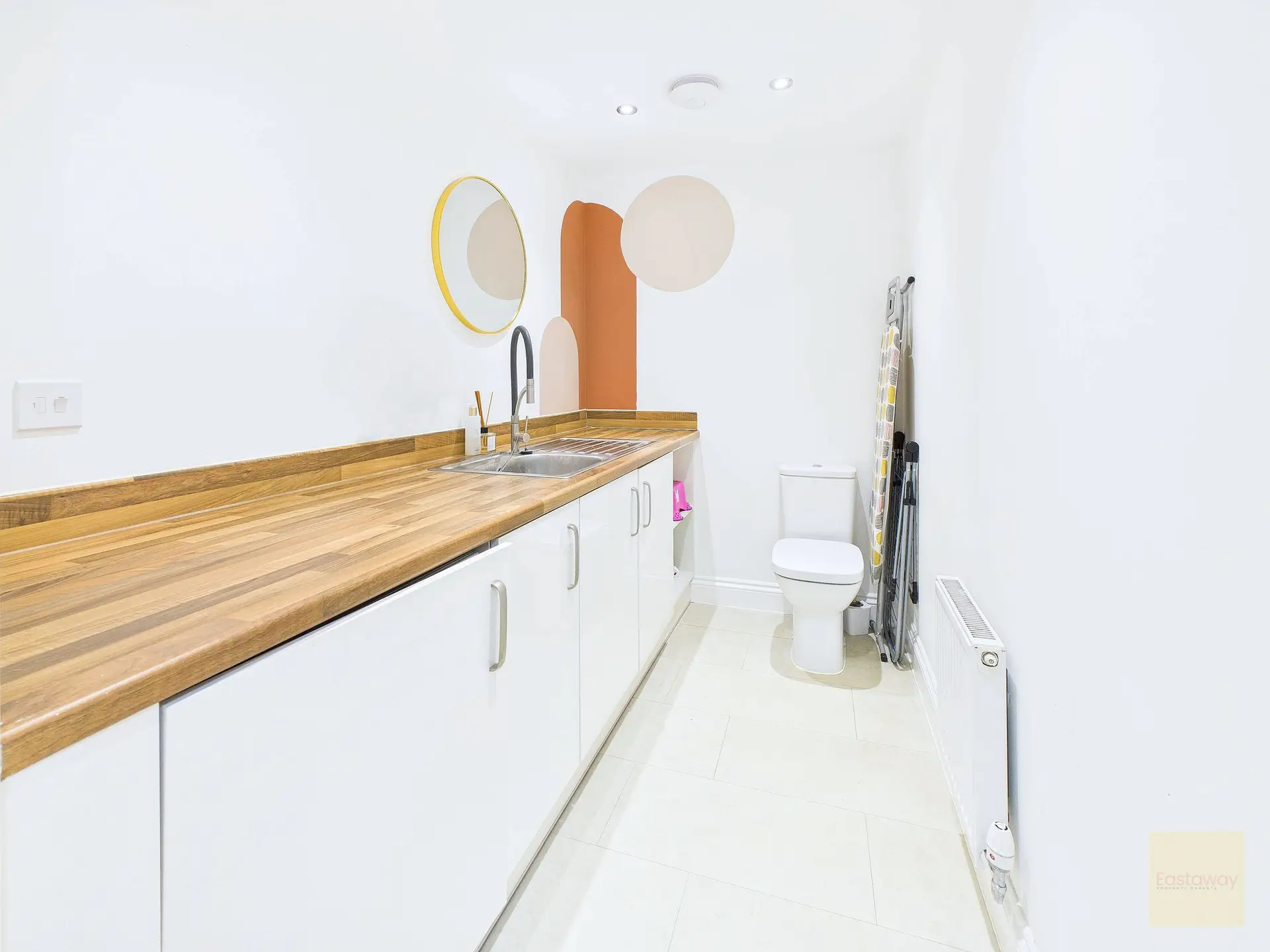 Just off the hallway a separate utility room keeps the washing machine and laundry piles out of sight, and you also have a ground floor wc which is always handy when you have guests or little ones.