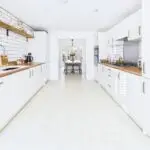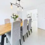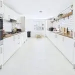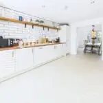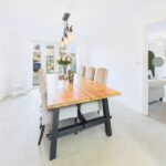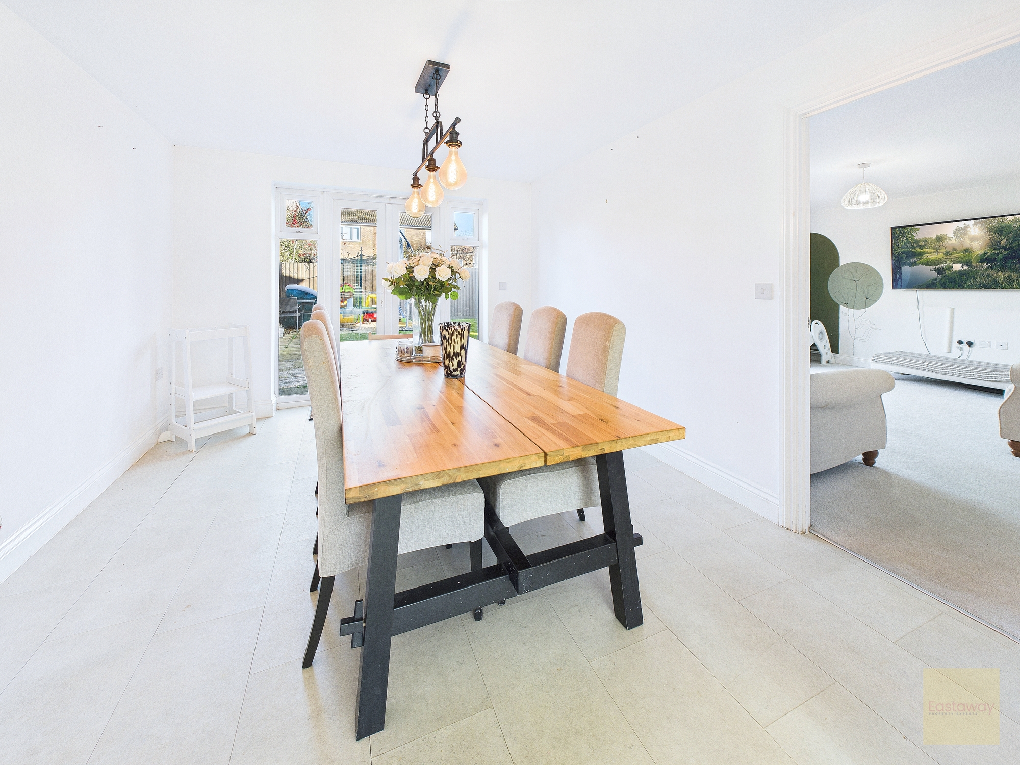 The kitchen is where this house properly comes into its own. It is a long, bright, big sociable room with sleek white units, wood effect worktops and all the integrated bits you need, hob, oven, fridge freezer, dishwasher. There is loads of counter space so you can cook, bake, prep school lunches and still have room for someone to sit with a coffee and keep you company. At the far end it opens through to the spacious dining room which faces the garden. You can easily get a generous family table in here and still move around it, so it is perfect for birthday meals, Christmas and playdates.
