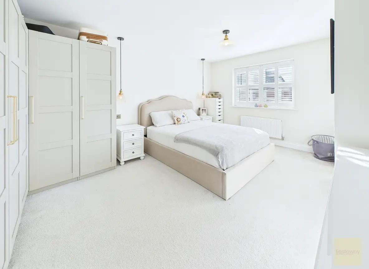 The other three bedrooms are all a good sized doubles and there’s not an awkward box room in sight!. They work brilliantly as childrens rooms, guest rooms, nursery or home office. The family bathroom is fresh and modern with neutral tiling and a shower over the bath, exactly the kind of room you can move straight into without feeling you need to change anything. Throughout the house the decor is light and neutral, and the plantation shutters on the windows give everything a clean, finished look while also being great for privacy and insulation.