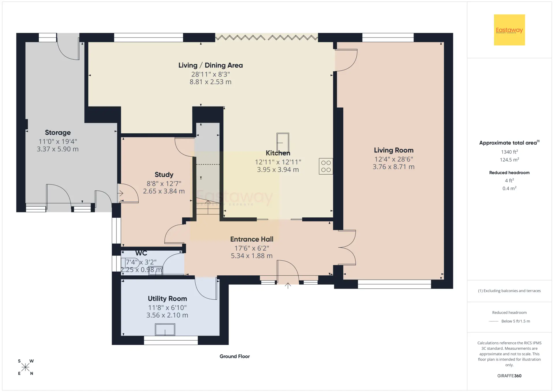 Ground Floor WC 7' 5" x 3' 3" (2.25m x 0.98m)