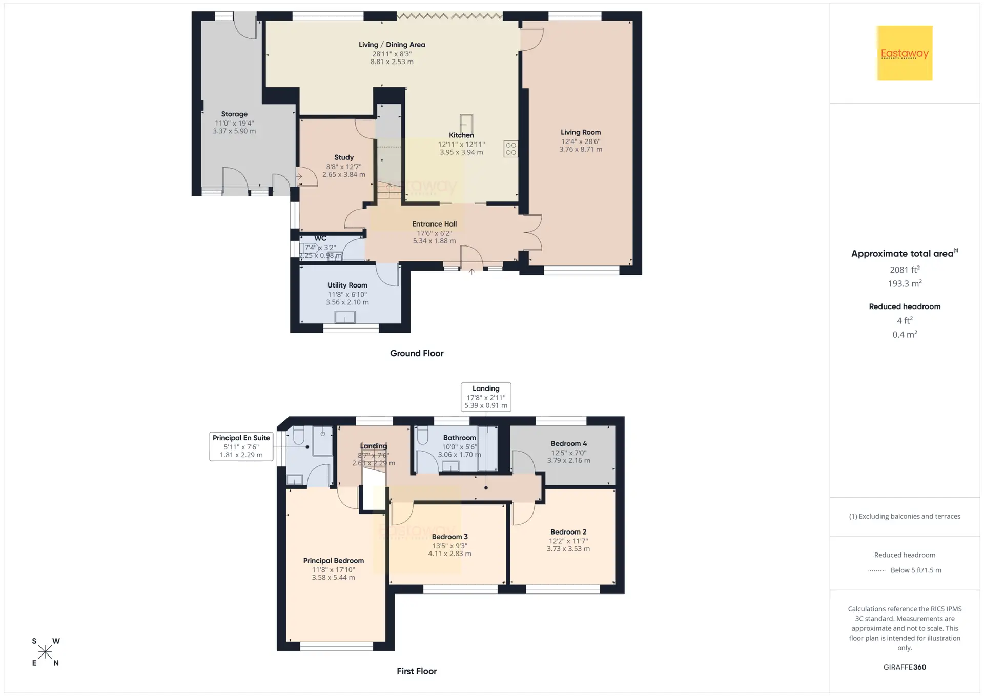 Landing 17' 8" x 3' 0" (5.39m x 0.91m)