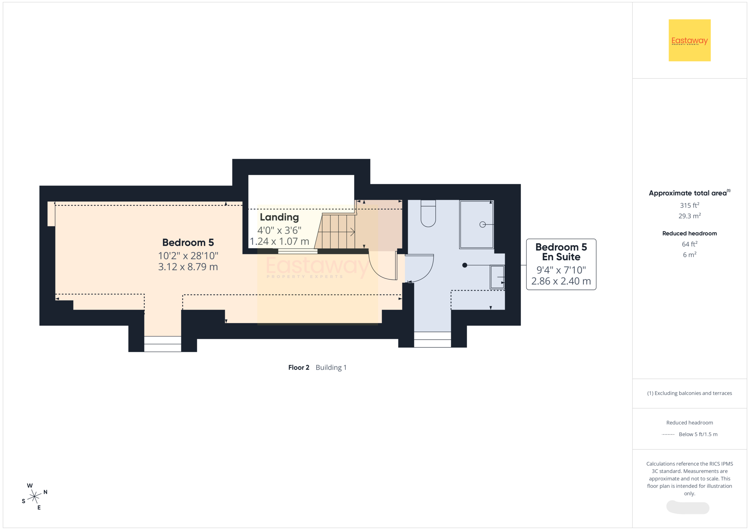 Principal En Suite WC 2' 10" x 4' 4" (0.86m x 1.32m)