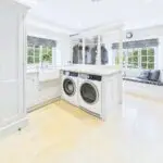 The ground floor is full of spaces that make everyday life feel easy. The main sitting room centres around a log burner and feels calm and comfortable, while the snug and the study each have their own wood burning stove, creating cosy retreats depending on the season or mood. There’s also a beautifully designed laundry and boot room that really stands out. With bespoke cabinetry, generous worktops, and even a built in window seat, it’s a practical space that feels every bit as considered as the rest of the house. A separate utility room and WC sit alongside, keeping the main living areas clutter free.