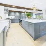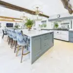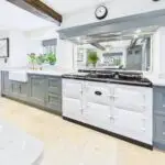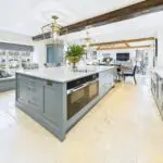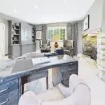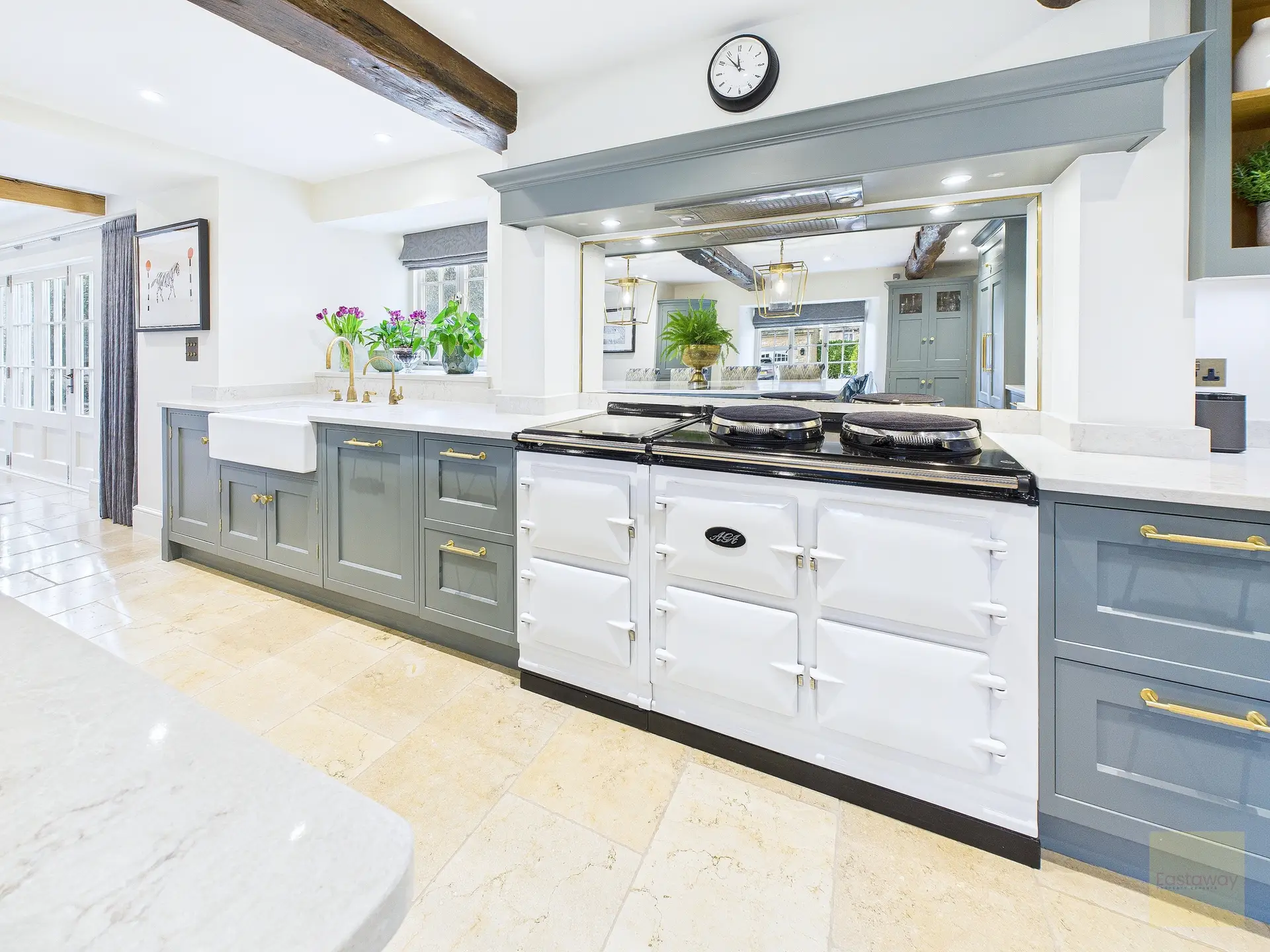 The kitchen sits at the heart of the home and really is a space you’ll gravitate towards. Handmade bespoke cabinetry by Wychwood Cabinet Makers, quartz worktops, Miele appliances, a Fisher and Paykel fridge, and a modern electric Aga combine to create a kitchen that’s as practical as it is impressive. Perrin and Rowe taps, limestone flooring, and exposed oak beams give it real presence, but it never feels like a showpiece. This is a kitchen designed to be used, shared, and enjoyed.