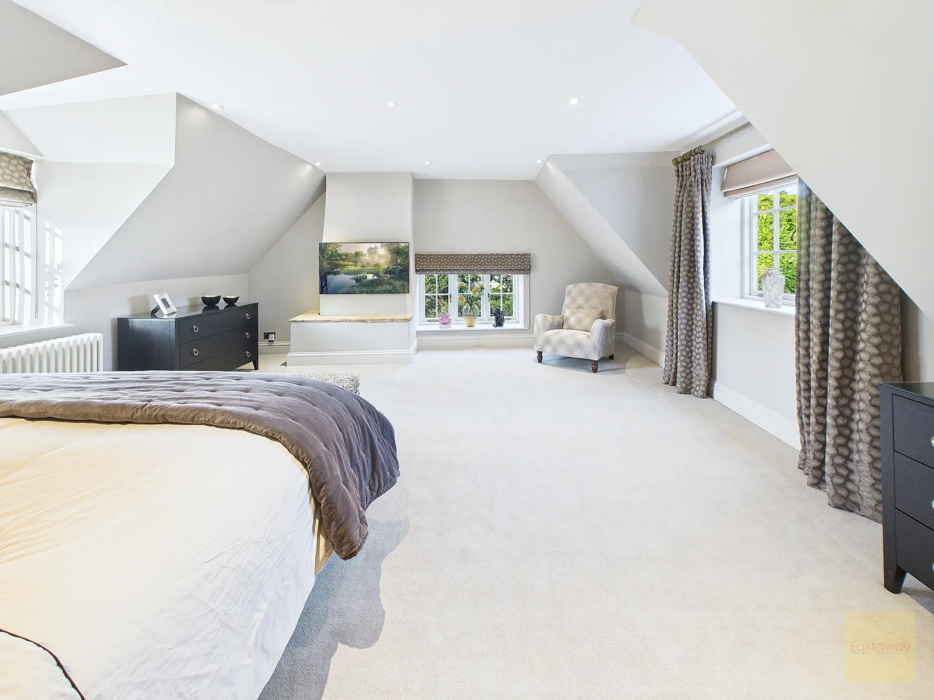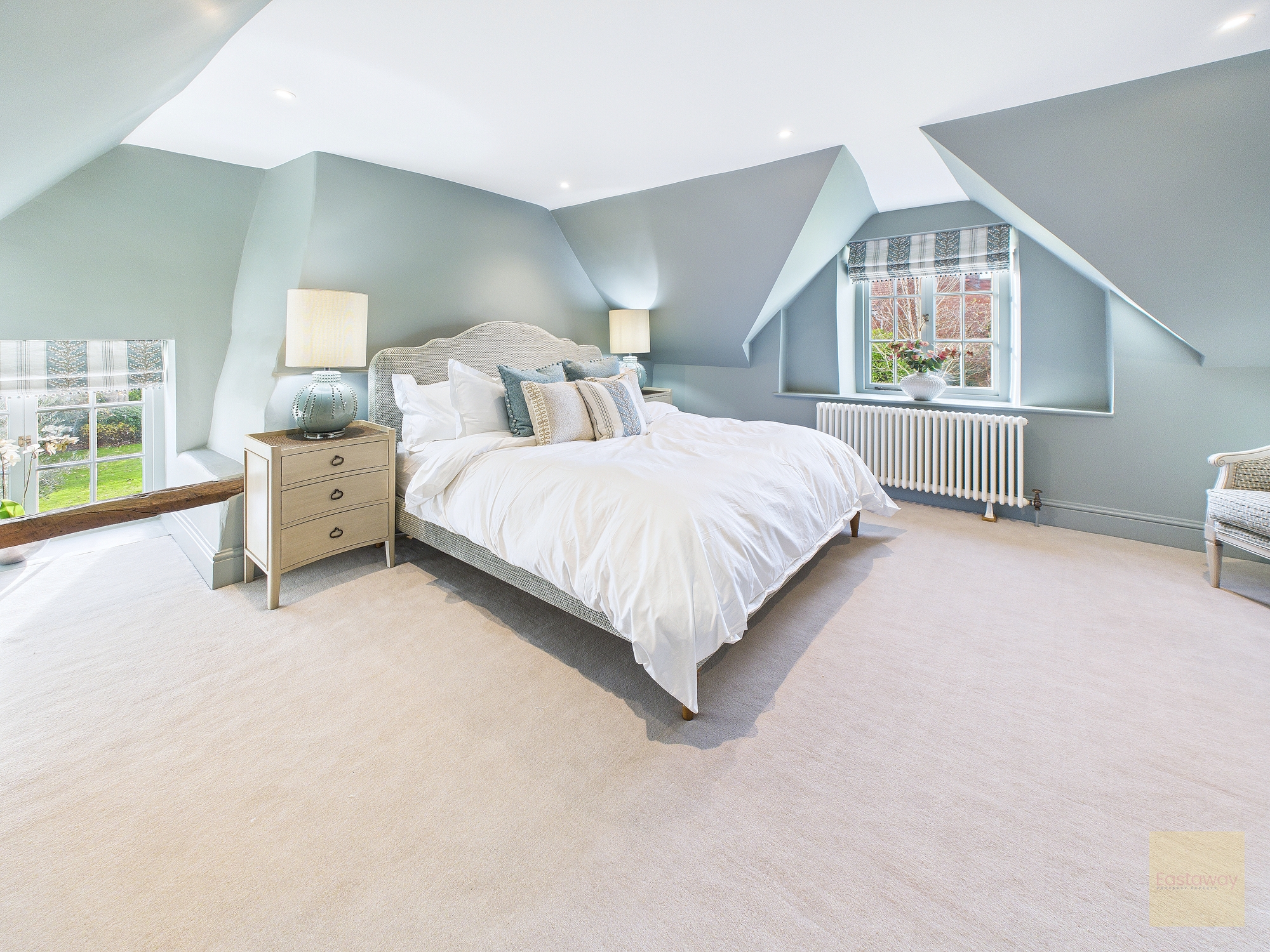 Bedroom two enjoys triple aspect windows and its own high specification en suite with freestanding bath and elegant vanity. Bedroom four benefits from a Jack and Jill en suite, ideal for family living or guests, while bedroom five occupies its own dedicated second floor. It feels like a private retreat, complete with its own en suite shower room and a real sense of independence. Bathrooms throughout have been sourced from CP Hart and Fired Earth, and the quality shows.