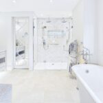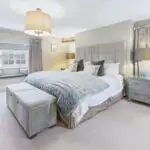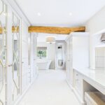 Upstairs, the bedroom accommodation is exceptional. There are five generous double bedrooms, each calm, well proportioned, and finished to a consistently high standard. The principal suite is a real highlight. A spacious bedroom, a bespoke dressing area with built in storage, and a beautifully appointed bathroom featuring Samuel Heath fittings, underfloor heating, a freestanding bath, and a double shower. It feels luxurious, but also serene and restful.