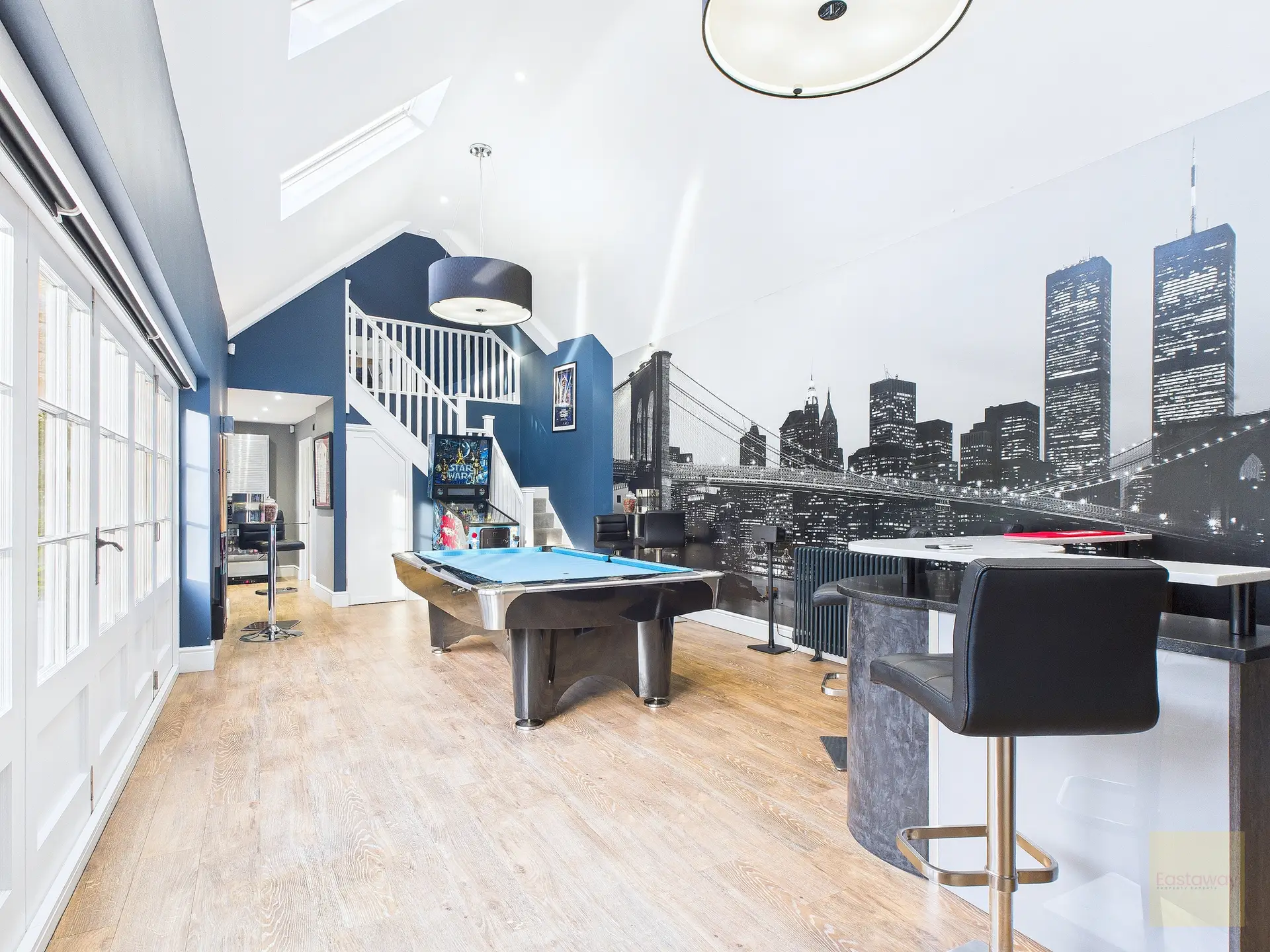 And then there’s the separate entertainment block, which adds a whole other layer to this home. Fully renovated and beautifully styled, it includes a games room with bar area, a cinema room, and a gym, all opening onto a patio. With its own heating system, bathroom facilities, and high speed connectivity, it works just as well for entertaining as it does for everyday use. It’s the sort of space that makes this house feel genuinely lifestyle led.