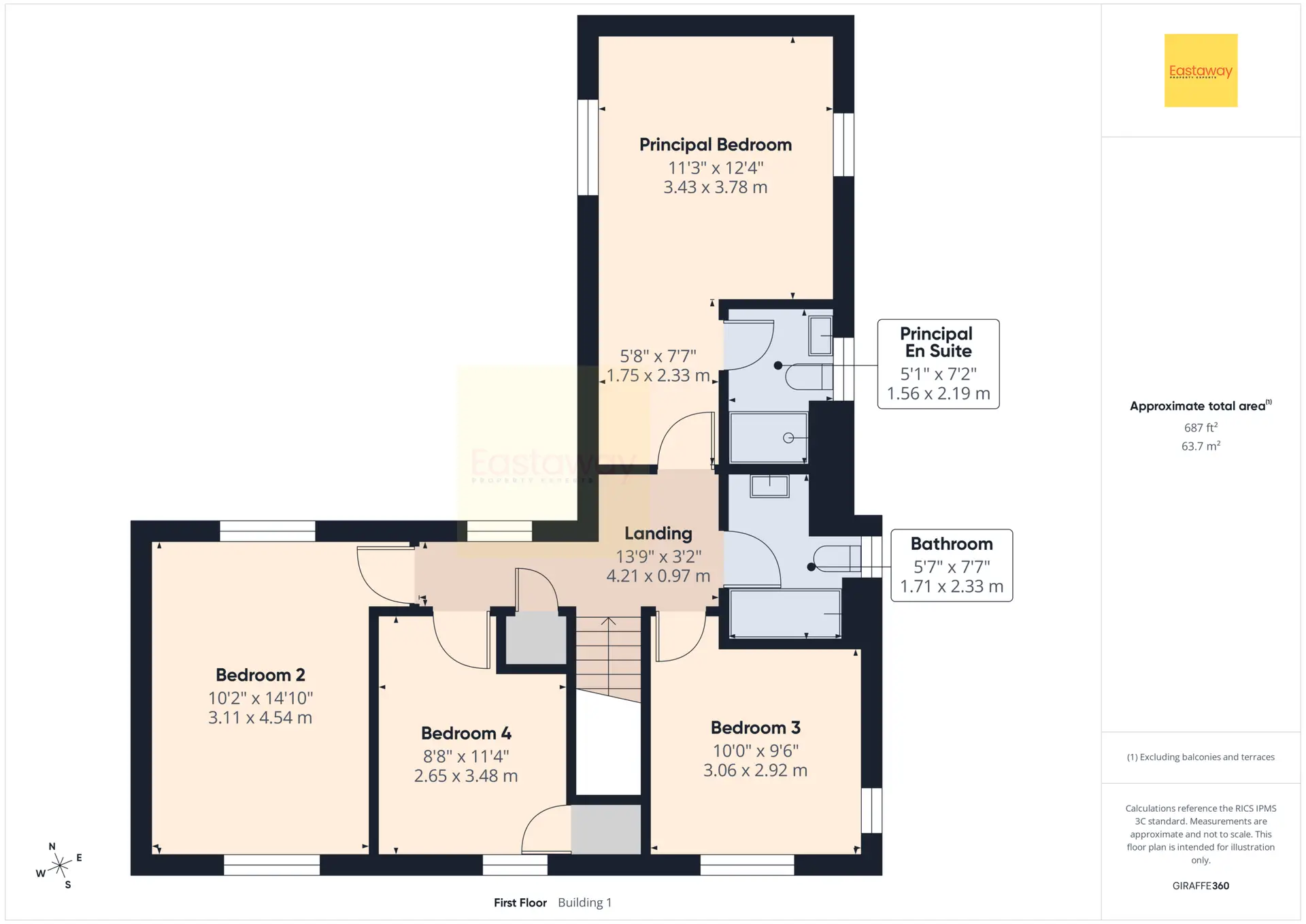 Principal Bedroom 5' 9" x 7' 8" (1.75m x 2.33m)