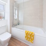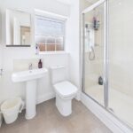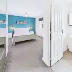 Upstairs, the room sizes continue to impress. All four bedrooms are doubles, which is a genuine selling point and makes the house feel especially generous. The principal bedroom is particularly inviting, with dual aspect windows drawing in natural light from two sides and its own immaculate en suite shower room. The family bathroom is equally smart and modern, fitted with a bath and overhead shower, while bedroom four also benefits from built in storage. There is also a large cupboard under the stairs downstairs, adding the sort of practical storage every family appreciates.