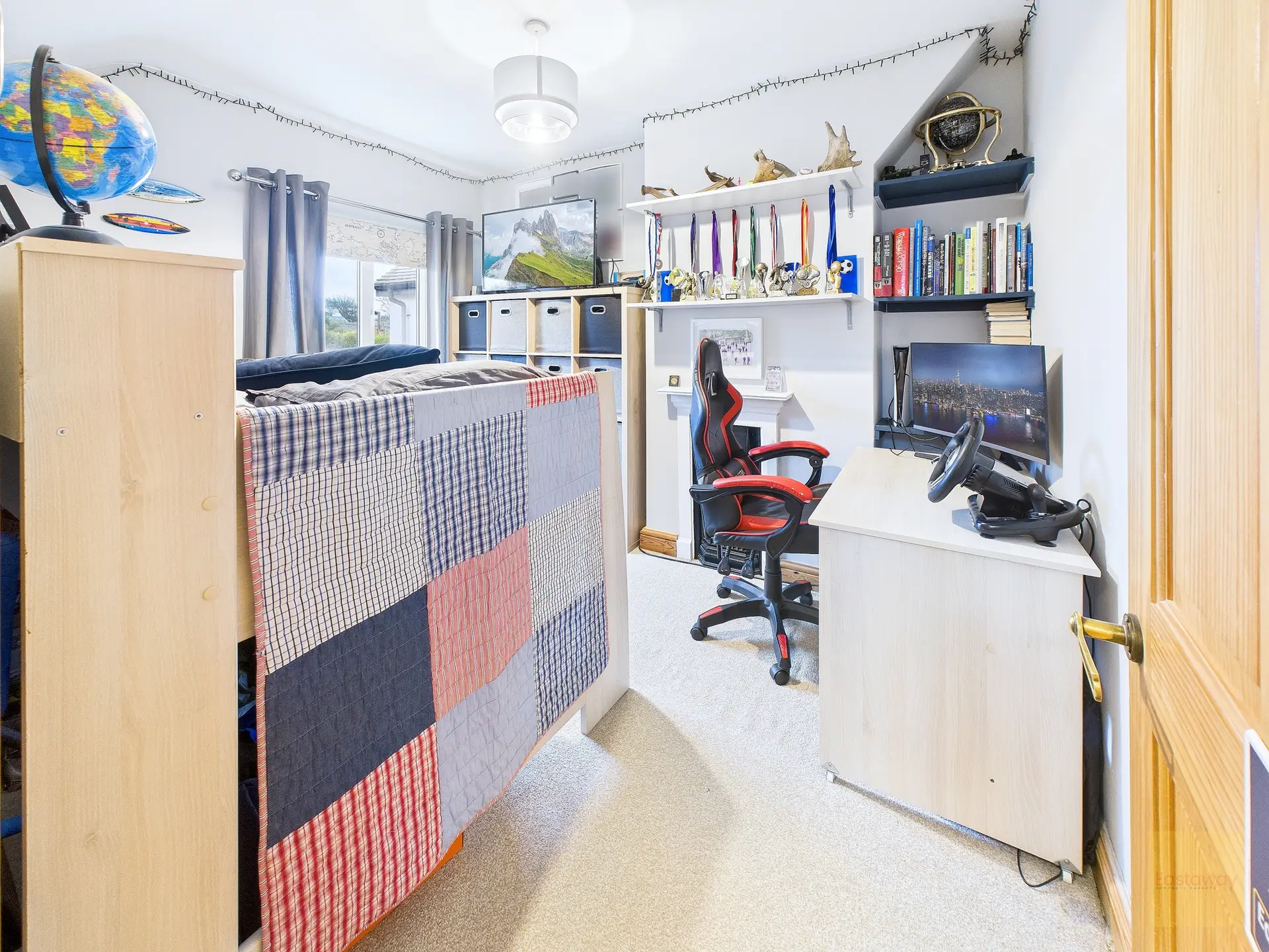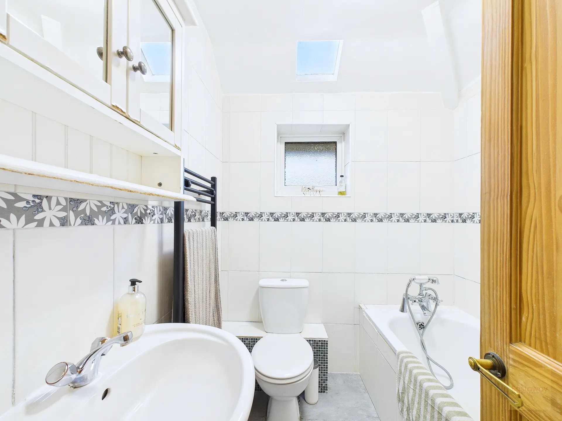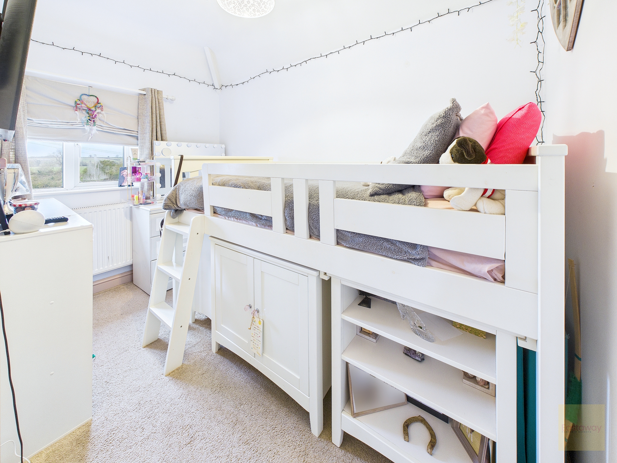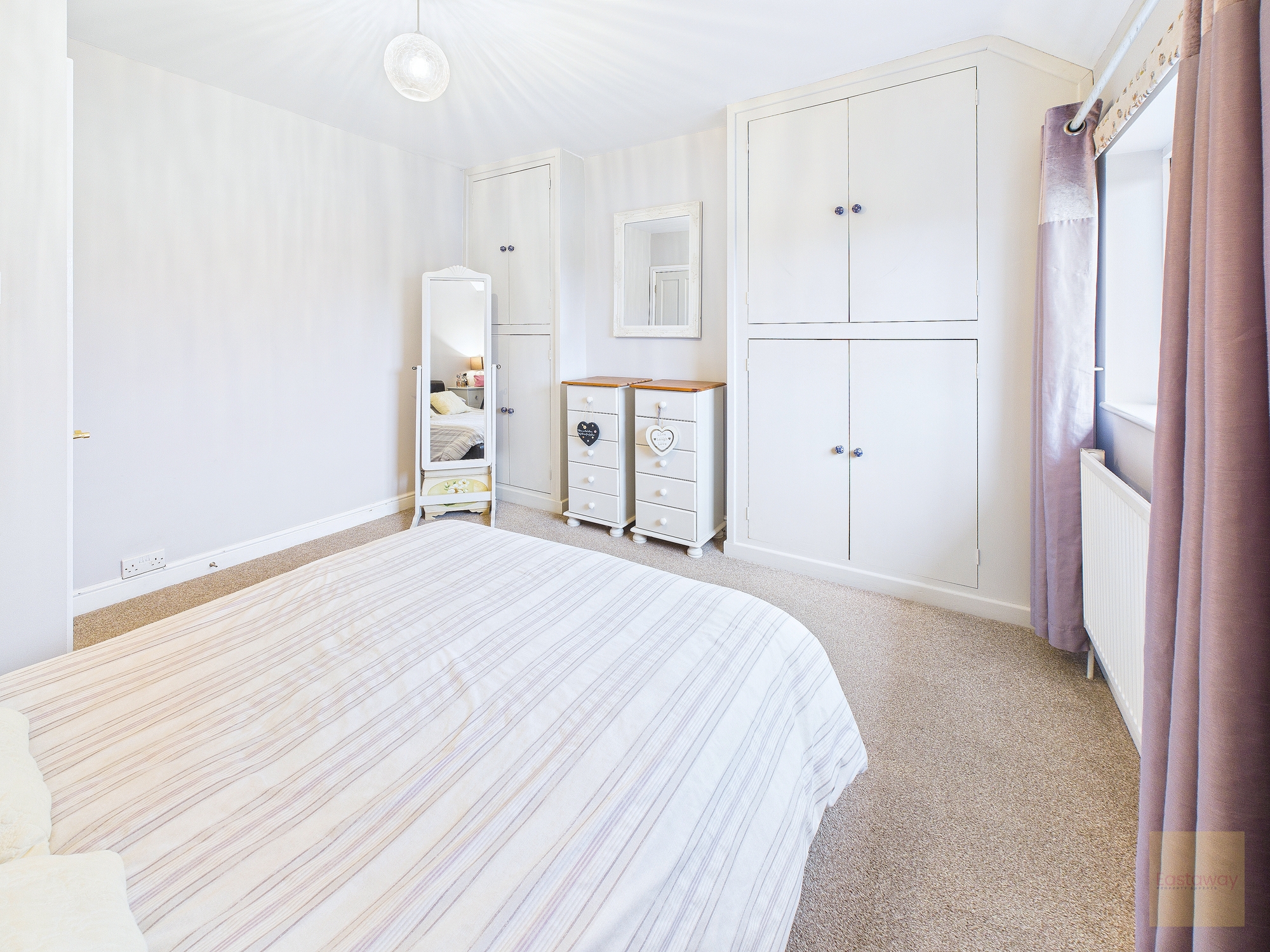 Upstairs, there are three bedrooms. The principal bedroom is a comfortable double with built in storage cleverly housing the water tank, keeping everything neatly tucked away. Two further single bedrooms work perfectly as children’s rooms, guest space, or a home office, and one even features a fireplace, adding a little extra character. The family bathroom is ready for modernisation, which is very much reflected in the value and potential this home offers.